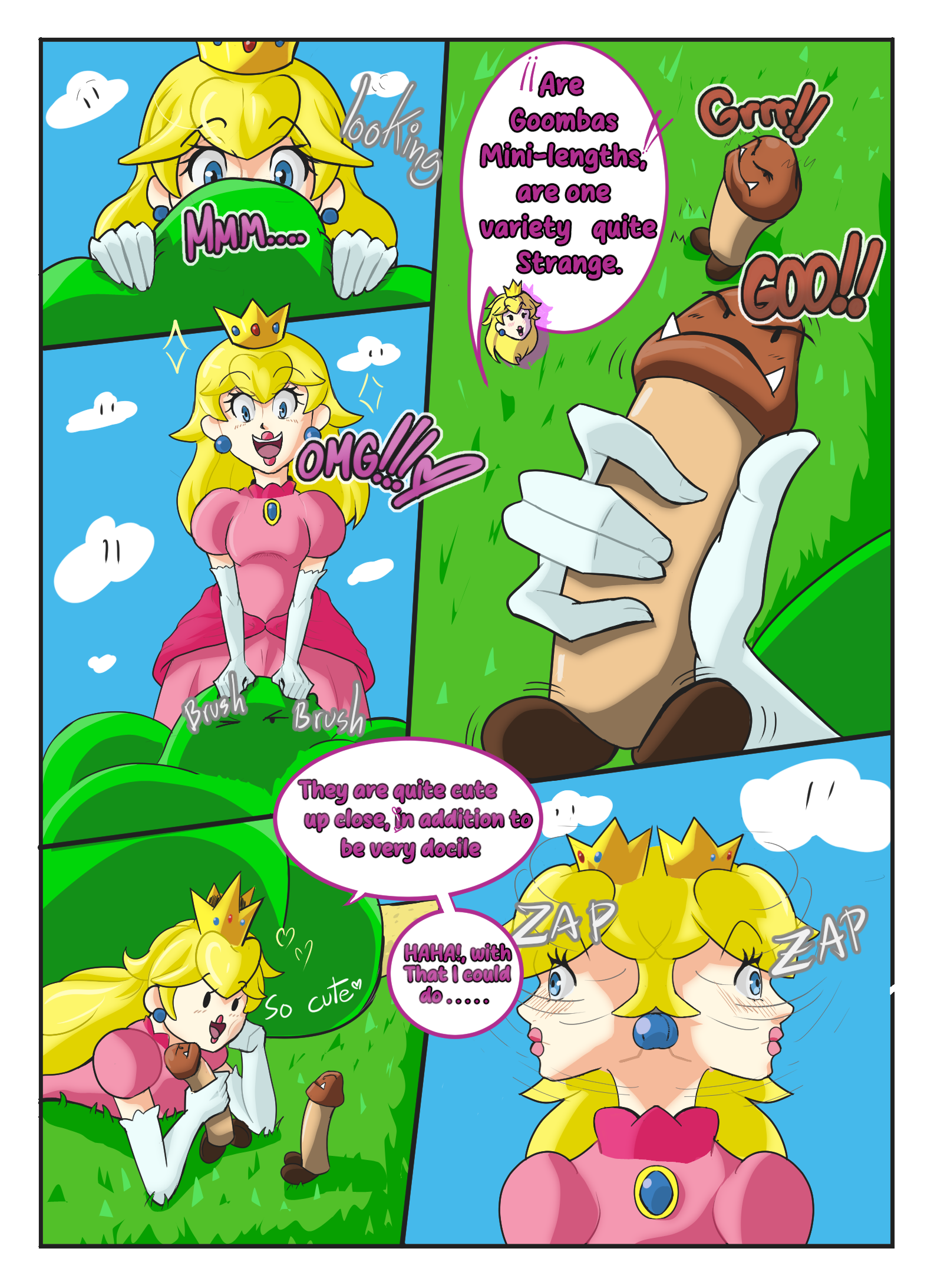 Description: In this comis rhe princess peach discouver a interesting goomba species and will have a nice time with them.