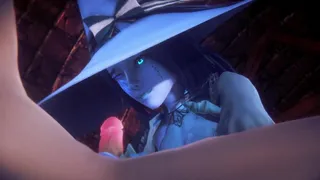 Description: Ranni the sexy blue Witch from Elden Ring has a night of fun with her new husband that is not longer maidenless. She gives him a blowjob and a footjob before she rides his cock cowgirl style.