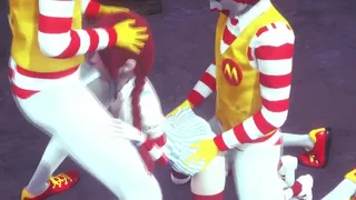 Description: Donald the clown is having sex with a redhead waitress.