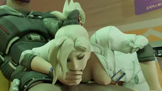 Mercy sucking huge dark boner of her squadmate