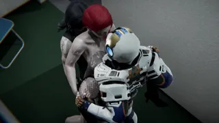 CYBERPUNK Gangbang Missionary, MMF, Doggystyle, Fingering, Orgasm, Cumshot
