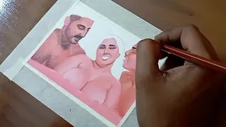 Erotic Art Or Drawing Of Sexy Indian Married Woman Having A Steamy Affair With Her Two Boyfriends