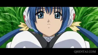 Two hentai dolls licked in 3some outdoor